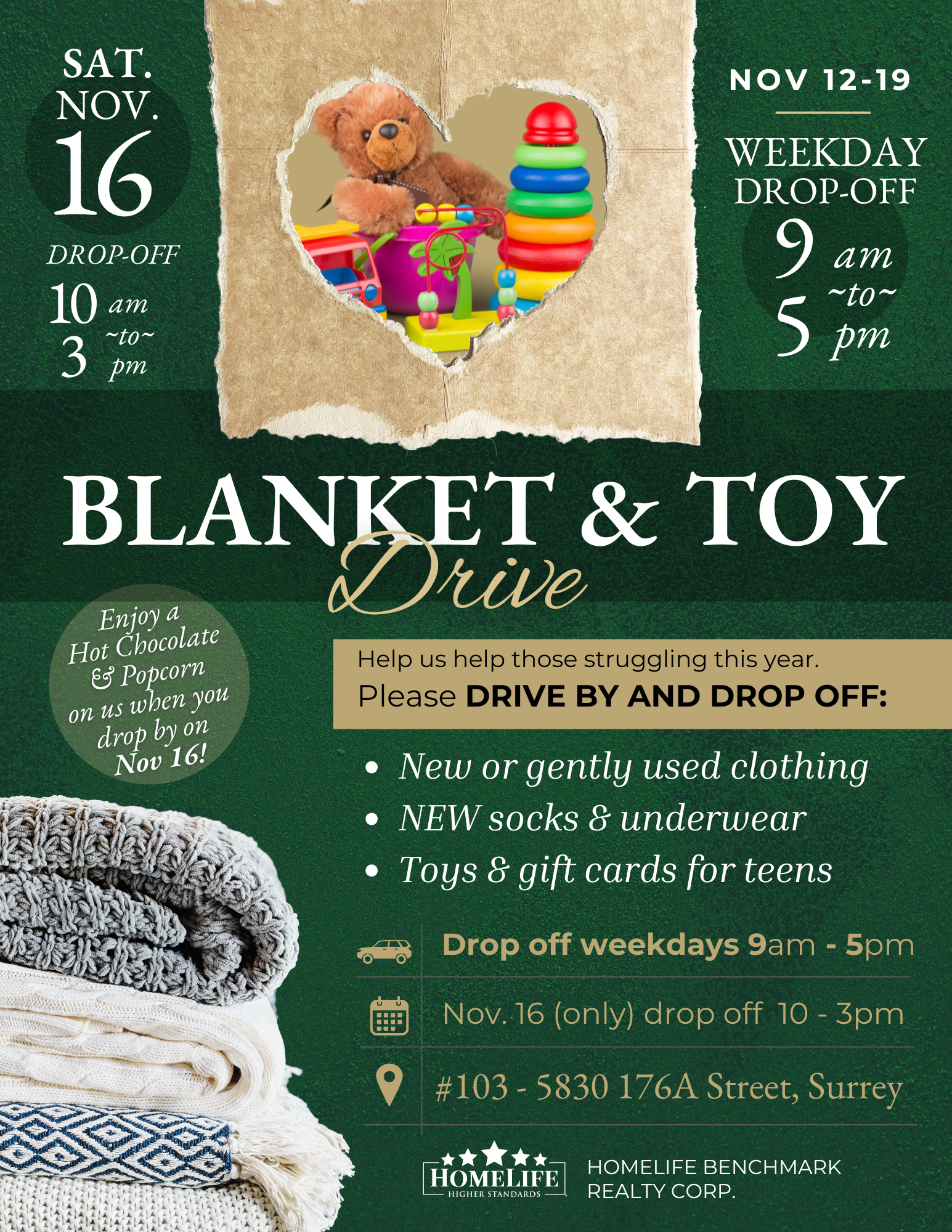 As we head into the colder months, there’s no better time to come together and spread a little warmth! 🧣❤️ We’re excited to announce that our office is hosting a special Blanket & Toy Drive on Saturday, November 16th, from 10 am to 3 pm, and we would love to see you there!